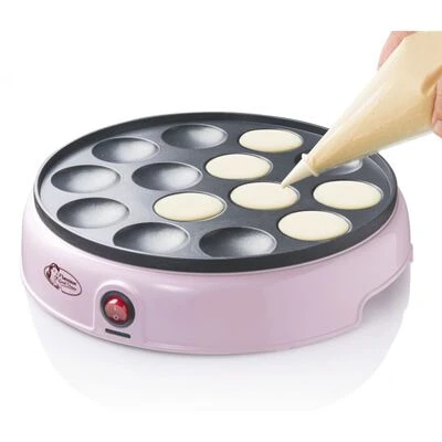 Je kunt in een oogwenk veertien heerlijke, goudbruine poffertjes bakken! Deze crêpemaker heeft een hittebestendige kunststof behuizing en een snel opwarmend verwarmingselement. Het apparaat is uitgerust met een aan/uit-schakelaar met indicatielampje. Daarnaast heeft de poffertjesmaker anti-slipvoetjes en een bakplaat met anti-aanbaklaag, waardoor hij eenvoudig schoon te maken is.