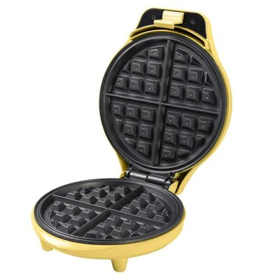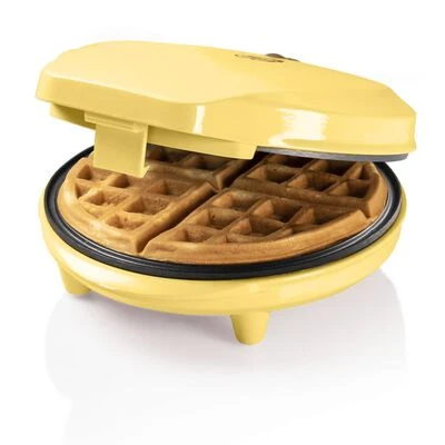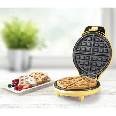 De gele, 700 W, ABWR730V wafelijzer van Bestron is een compact en stevig keukenapparaat.