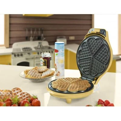 Het beschikt over een hittebestendige behuizing, snoeropwikkelsysteem, anti-aanbaklaag en automatische temperatuurregeling met 2 indicatielampjes. Dit wafelijzer kan verticaal worden opgeborgen om opslagruimte te besparen. Met deze wafelmaker maak je eenvoudig hartvormige wafels voor bij het ontbijt en bij de thee!