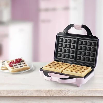 Maak thuis de lekkerste wafels met behulp van het roze, 750 W, AWB700P wafelijzer van Bestron!